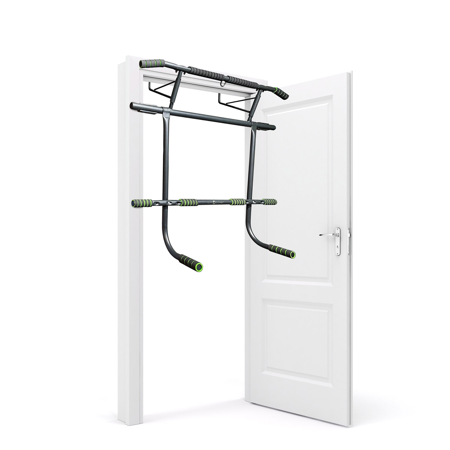 FOAM GRIP HANDLES – Fitted with comfortable, non-slip padding for extra-grip while exercising, this door frame pull up bar is suitable for door frames measuring 70-90cm L x 12-21cm W (frame depth). With two horizontal steel bars for greater versatility, the top bar is a full 20cms higher than your traditional pull-up bar allowing for full extension and dip for pull-ups.