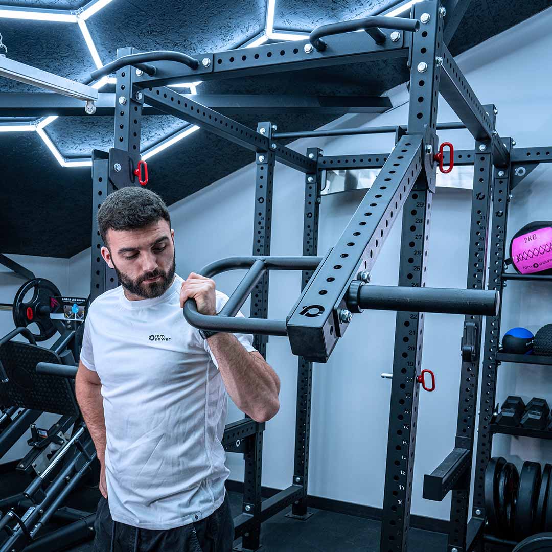 ADJUSTABLE JAMMER ARMS: Experience effortless height customization with our Jammer Arms, allowing you to effortlessly tailor the height and width to match your training requirements. Simply manipulate the position of the Jammer Arms using the easy to insert & lock pin which will allow you to move the lever arms higher or lower based on your chosen exercise. Roll the handles to your preferred height in seconds with the unique pin design, allowing these Jammer Arms to be used by people of all different height and levels.