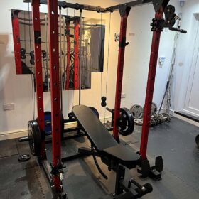 This multi-gym comes with three different cable attachments to facilitate a range of exercise movements including: