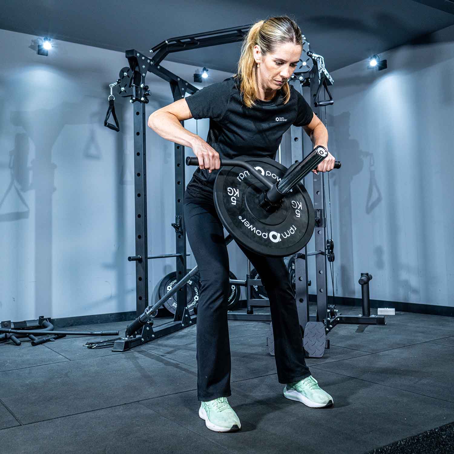 - T-bar barbell attachment: Use in combination with the landmine sleeve to perform T-bar rows.
