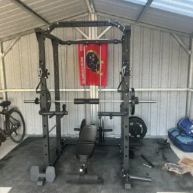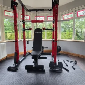 - 7FT 20KG ESSENTIAL BARBELL (OPTIONAL): Depending on the variation you choose, the bundle includes an Essential 7ft/2200mm Silver Barbell. Providing an extra 20kg to your set up, secure the barbell to the J-Hooks on the rack or use it with the 360⁰ landmine sleeve and T-bar attachment to perform a range of extended exercises. When not in use, the barbell can neatly be stored upright in the holder at the rear of the rack.