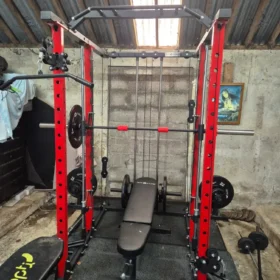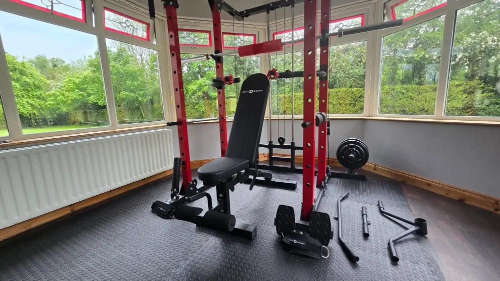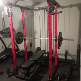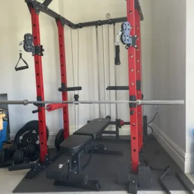 This multi-gym comes with three different cable attachments to facilitate a range of exercise movements including: