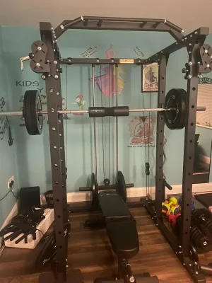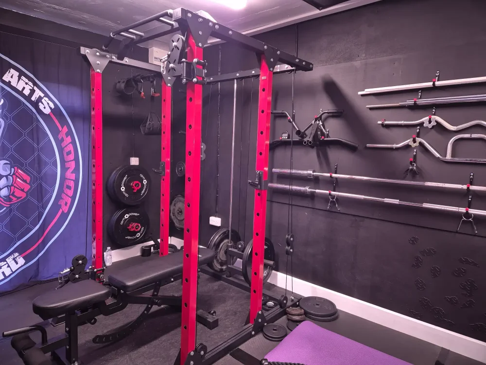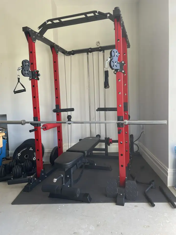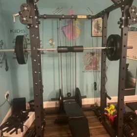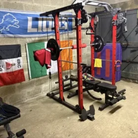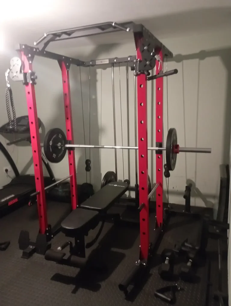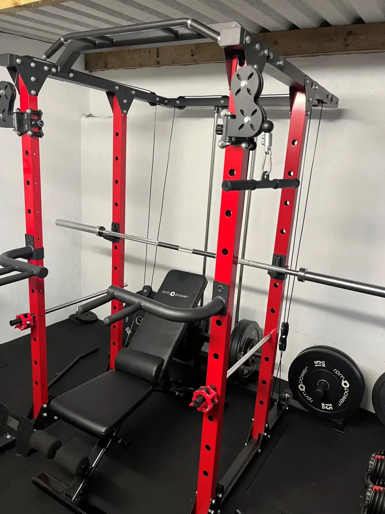 - Multiple practical attachments, incl. lat pull down, dip station, J-hooks, pull-up bar, low-row plate, landmine sleeve and more