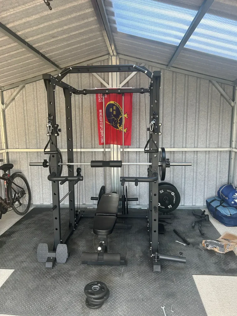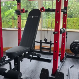- Safety bars: 2 x steel safety bars for additional security when performing barbell exercises.