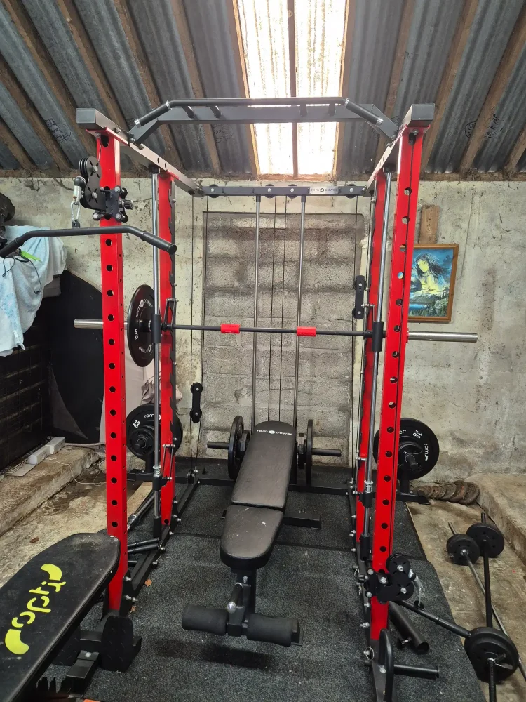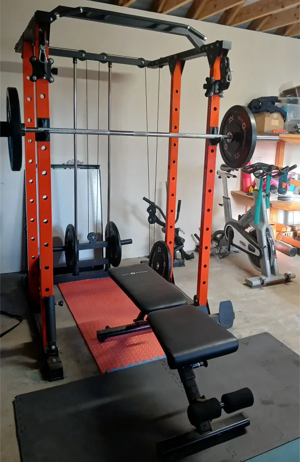 - Pull-up bar: Integrated pull-up bar atop the frame with five grip options.
