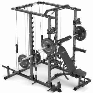 DUAL RAIL CABLE CROSSOVER: The Multi-Gym Crossover with Smith Bar features an innovative dual-rail cable crossover apparatus that ensures an exceptionally seamless experience for a diverse range of upper body workouts. Offering 16 adjustable height options for the cable system, you can seamlessly target and engage various muscle groups by sliding the mechanism up or down the rack frame.