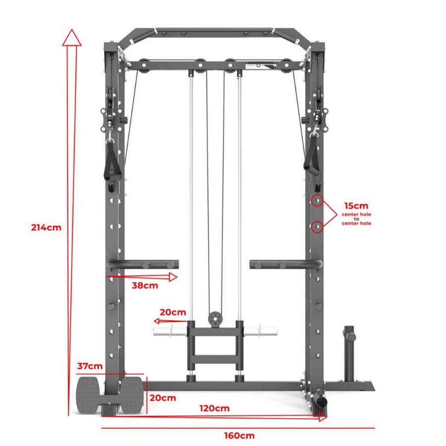 • Practical attachments, incl. lat pull down variations, dip station, low row platform, rotating landmine sleeve and more