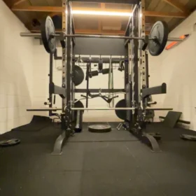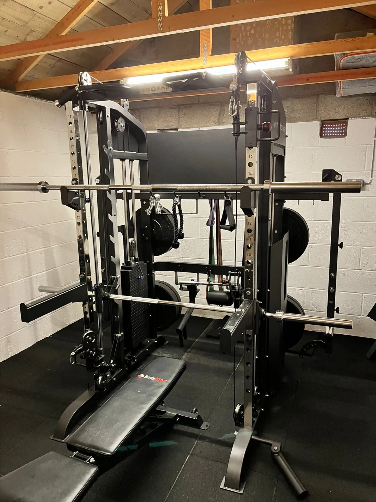 SMITH MACHINE & SPOTTERS: The Multi-Gym features a built-in Smith machine for optimal safety during compound movements. From traditional squats and bench presses to more targeted movements like lunges and shoulder presses, whatever the exercise, as you fatigue and approach failure, simply twist the bar 1/5 of a turn and the spotter hooks on each side immediately engage to lock the bar firmly in place. This will prevent the barbell from falling and helps to ensure safe spotting throughout your workouts, even with the heaviest of loads. 19 catch rods are spaced evenly every 8.5cm along the rail for the Smith bar to hook into. Removable spotter arms and J-hooks are also included for further barbell security and peace of mind when exercising.