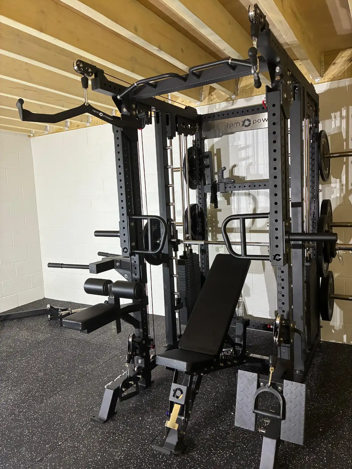 INTEGRATED SMITH MACHINE: A 20kg self-balancing Smith bar is built into the inner frame of this cable machine. Guided by rods for smooth, stable, and effective performance, the Smith bar can simply be racked onto the catch rods at any point to ensure greater safety as you lift.