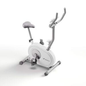 VERSATILE EXERCISE BIKE: Available in black or white, the MR-621 spin bike features a fully adjustable seat, a phone/tablet holder, and an LCD console for tracking key metrics such as time, speed, distance, calories, and heart rate.