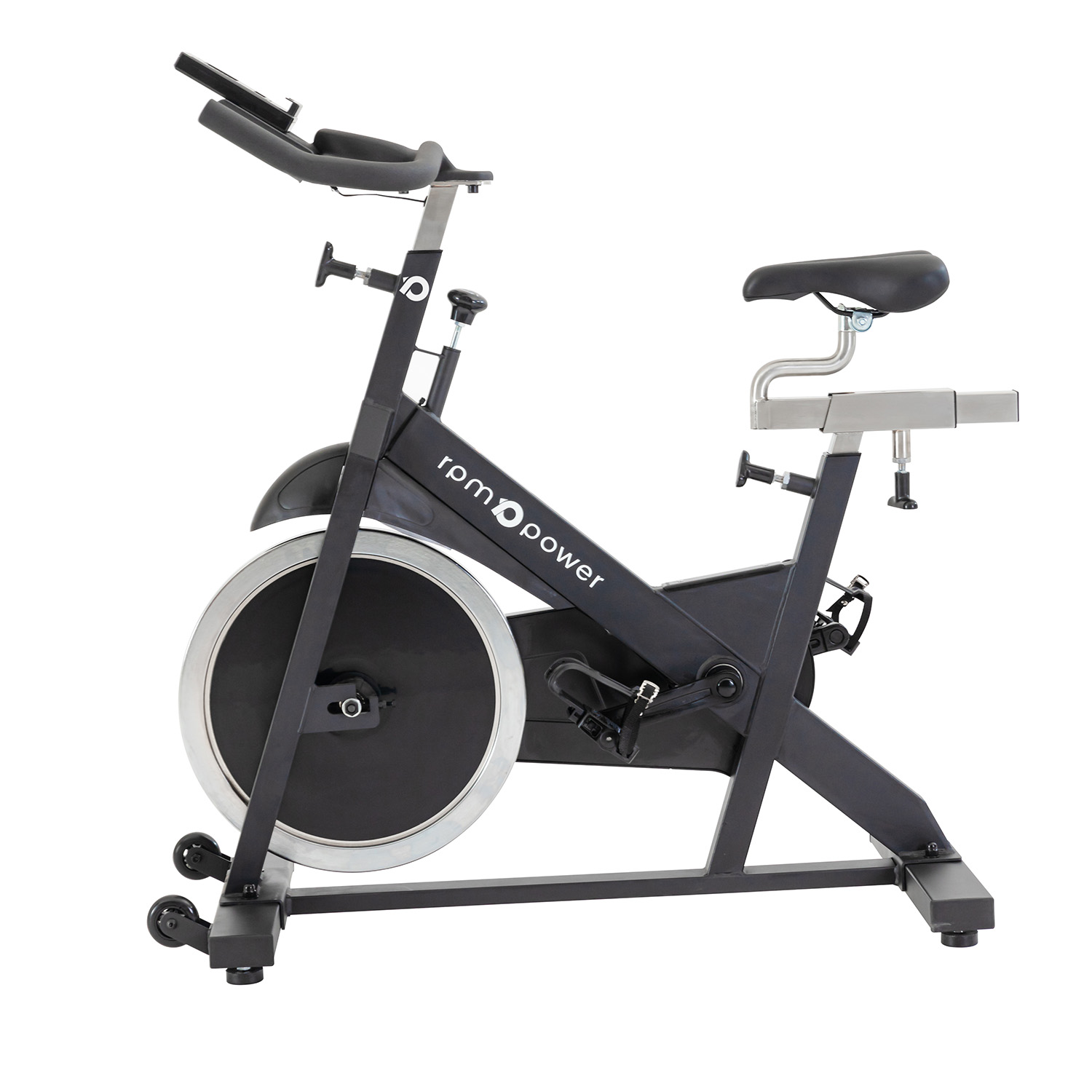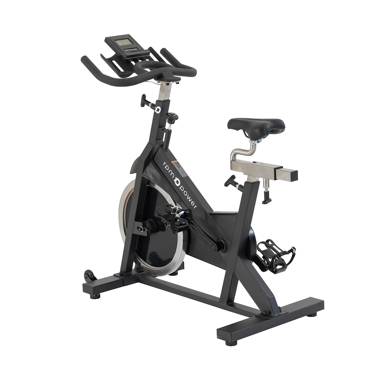 HEAVY-DUTY FRAME: Built with a heavy 58kg reinforced frame and precision engineering, the SpinMax Essential provides outstanding stability no matter how hard you push. Even during high-intensity sessions, this bike remains rock-solid, allowing you to focus fully on performance. The pedals are toe-caged for additional security while cycling and the front of the bike is fitted with caster wheels for easy moving.