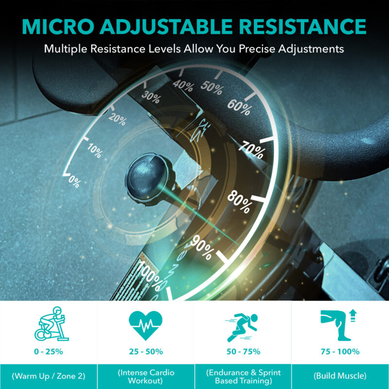 POWERFUL 18KG FLYWHEEL: At the heart of the SpinMax Essential is its 18kg steel chain-driven flywheel. Designed for seamless transitions between resistance levels, it delivers a smooth, natural ride with the torque needed for the toughest workouts. Perfect for building strength, endurance and cardiovascular fitness.